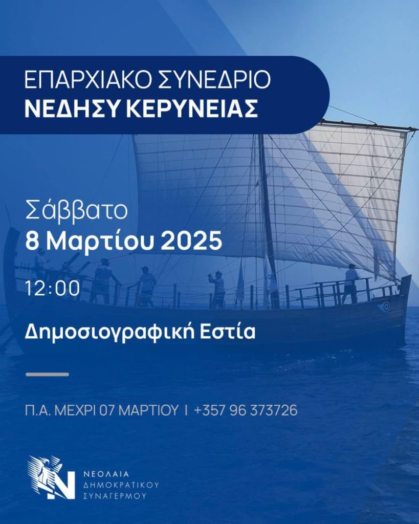Με μεγάλη χαρά σας προσκαλούμε στο Επαρχιακό Συνέδριο της ΝΕΔΗΣΥ Κερύνειας, που θα πραγματοποιηθεί το Σάββατο 08 Μαρτίου, στις 12:00, στη Δημοσιογραφική Εστία, Λευκωσία.